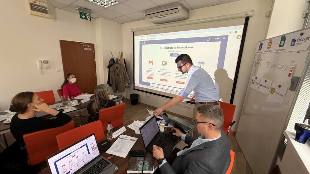 Prvý modul bol zameraný na efektívne využívanie digitálnych nástrojov pri komunikácii, plánovaní práce a organizácii úloh. Účastníci sa venovali aj praktickému využitiu umelej inteligencie pri pracovných aktivitách.